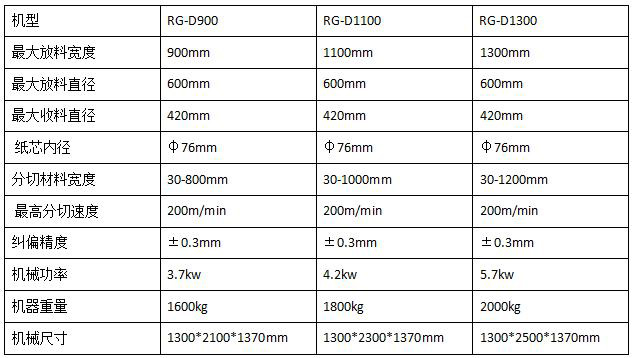 RG-3D立式分切機(jī)參數(shù):
